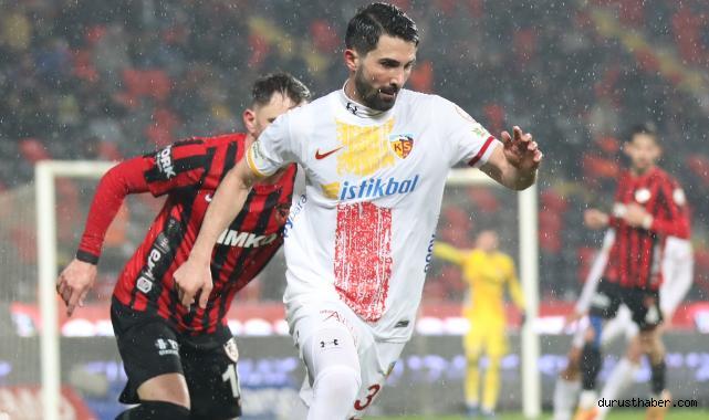 KAYSERİ(1HA) – Kayserispor, Süper Lig'in 24’üncü haftasında konuk olduğu Gaizantep FK karşısında Mehmet Eray'ın golü ile öne geçtiği maçtan 1-1’lik eşitlikle ayrıldı.Süper Lig'in 24'ncü haftasında Gaziantep FK, Kayserispor'u konuk etti. Mücadele 1-1 skorla sona erdi. kayserispor 7 maçlık mağlubiyetten sonraki iki maçı beraberlikle tamamladı.GOL... 11' sol kanattan gelişen Kayserispor atağında Kartal Kayra’nın volesi sonucu ceza sahası içerisinde topla buluşan Mehmet Eray Özbek’in vuruşu ağlarla buluştu: 0-1.