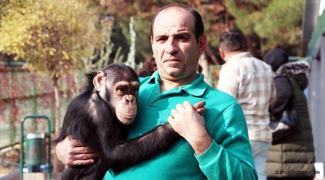 Gaziantep Hayvanat Bahçesi'nin maskotu şempanze "Can", ziyaretçilerle oyun oynamayı çok seviyor.