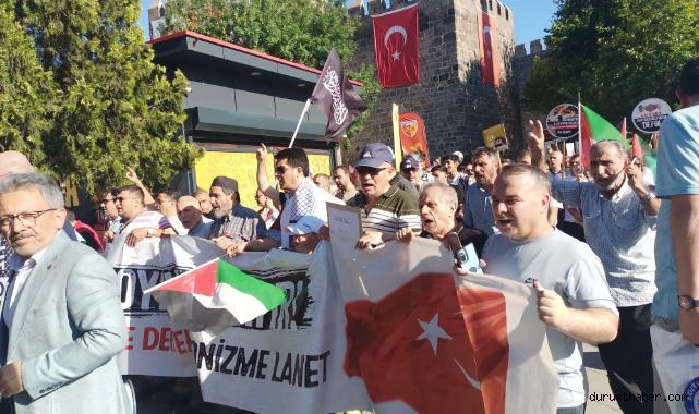 Topluluk adına konuşan Memur-Sen Kayseri İl Temsilcisi Mehmet Emin Aslantürk, “7 Ekim 2023’ten bu yana yaşanan katliama insanlık bu soykırıma dur diyemiyor, demiyor. Aksa Tufanı ile başlayan İsrail, ABD, AB ve batı dünyasının devam ettirdiği acımasız ve vahşi soykırımda bugüne kadar 15 bini enkaz altında kalanlar, 14 bini çocuk, 11 bini kadın olmak üzere 50 bin kadar Filistinli Müslüman katledildi. 2 milyon nüfusa sahip koca Gazze şehri, karadan havadan ve de denizden yapılan bombardımanlarla harabeye dönüştürüldü. İlaçsızlık, açlık, susuzluk ve barınaksızlıkla mücadele eden Gazze halkı, Rabbiyle baş başa kalmış durumdadır. Ne yazık ki masum Filistin halkıyla aynı coğrafyanın insanı olan Arap ülkeleri, Gazze soykırımının durdurulması için herhangi bir çaba içerisine girmediler. Sessizlik içinde din kardeşlerinin katledilmesini seyrediyorlar, Türkiye’nin 7 Ekimden bu yana Cumhurbaşkanı, Dışişleri Bakanı ve diğer yetkililer nezdinde savaşın durması için yaptığı yoğun diplomatik çabalar da ne yazık ki akan kanı durduracak sona ulaşamadı. Gazze ve Filistin de bir Müslüman millet soykırımla yok edilmeye, koca dünya da bunu seyretmeye devam ediyor. Dünyanın sivil insanlarının, yönetimlerinin basiretsizce çoğu zaman İsrail’in yanında yer alarak, ortak olduğu Gazze soykırımına karşı Filistinli mazlumların anında yer alması, insanlık adına umut verici erdemli bir harekettir. ABD’den Kanada’ya, İngiltere’den Almanya ve Belçika’ya kadar birçok coğrafyada kadın, erkek, yaşlı, gençlerin Filistinli masumlar için sokakları, meydanları doldurup eylem yapmaları, insanlık vicdanı adına takdir edilesi destekler olarak ortaya çıkmıştır. 8 aydan bu yana Gazze katliamında hayatını kaybedenlere Allah’tan rahmet, yaralılar acil şifalar ve Filistin halkına baş sağlığı diliyoruz. Bir an önce ateşkes sağlanması ve akan kanın durdurulması için vicdanını kaybetmemiş insanlığı harekete geçirmeye devam ediyoruz” şeklinde konuştu.