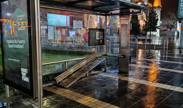 Kayseri Cumhuriyet Meydanı’ndaki tramvay durağında gece kırılan oturak, sabah saatlerinde Büyükşehir Belediyesi ekipleri tarafından kısa sürede tamir edildi.