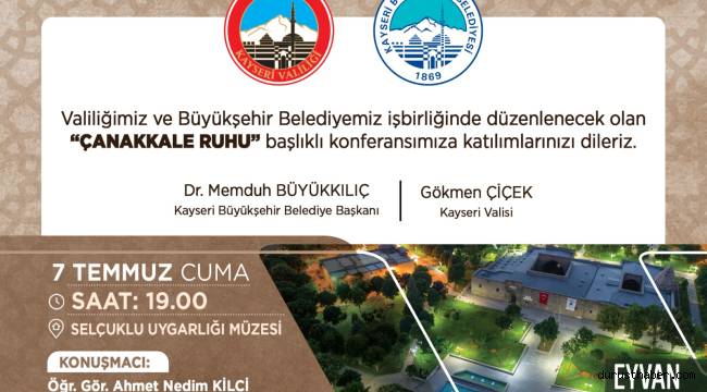 Buna yönelik olarak Eyvan Sohbetlerinin ilki, kahramanlık destanı Çanakkale Zaferi, Öğr. Gör. Ahmet Nedim Kilci’nin anlatımıyla ‘Çanakkale Ruhu’ başlıklı konferansla Gevher Nesibe Medresesi ve Şifahanesi’nde 07 Temmuz 2023 Cuma günü saat 19:00’da başlayacak.