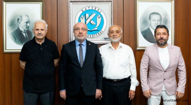 Kayseri Gönüllü Kültür Kuruluşları ve Yazarlar Birliği Kayseri Şubesi yöneticileri Kayseri Üniversitesi Rektörlüğüne yeniden atanan Prof. Dr. Kurtuluş Karamustafa'yı makamında ziyaret ederek hayırlı olsun dileklerinde bulundu.