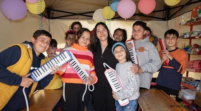 Yaklaşık 5 yıldır müzik öğretmenliği yapan 29 yaşındaki Ezgi Ataş ise çalışmalara başlamalarının ardından kuzeninin, depremde vefat eden nişanlısı adına sınıfa melodika bağışladığını söyledi.Ataş, çocukların dersleri heyecanla beklediğini, sınıfa ders saatinden önce geldiğini anlatarak, "Veliler gelip teşekkür etmeye başladı. Çünkü çocuklar sanatla uğraşıyor, enstrüman öğreniyorlar." ifadelerini kullandı.