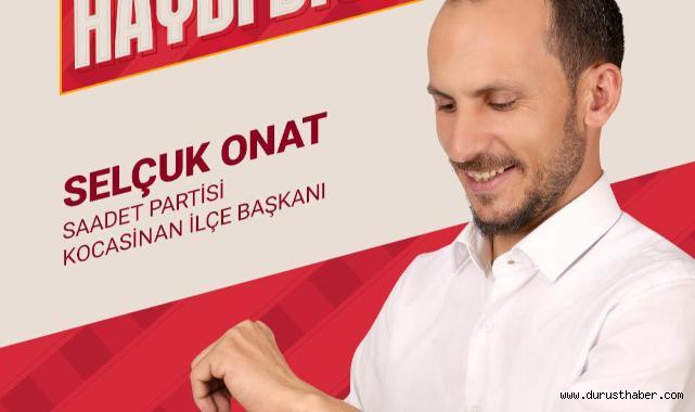 Saadet Partisi'nde önemli bir görev değişimi yaşandı. Teşkilatın emektar isimlerinden Selçuk Onat, Kocasinan İlçe Başkanlığı görevine atandı. Parti içerisinde uzun yıllardır çeşitli kademelerde görev alan ve Milli Görüş davasına bağlılığıyla tanınan Onat, sosyal medya üzerinden yaptığı açıklamayla yeni görevine resmen başladığını kamuoyuna duyurdu.
