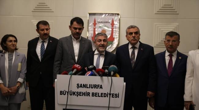 Çevre, Şehircilik ve İklim Değişikliği Bakanı Murat Kurum da toplantıda, kent merkezi ve ilçelerde Bakanlık olarak yaptıkları yatırımlarla ilgili istişarelerde bulunduklarını belirtti.Şanlıurfa'ya Bakanlık olarak diğer ilgili kurumlarla eş zamanlı hizmetler sunduklarını dile getiren Kurum, daha güzel bir kent inşa etmek için gayret gösterdiklerini söyledi.Kurum, birlik ve beraberliğin Şanlıurfa'da güçlü olduğunu bildiğini dile getirerek, şöyle konuştu:"Şanlıurfa'ya değeri 14 milyar liraya ulaşan 13 bin 949 konut kazandırdık. Yatırım değeri 4 milyar olan 788 ticari ünite ve sosyal donatılar ile 6 millet bahçesi projemiz Şanlıurfa'da devam ediyor. Tarımın daha iyi olması için 3 barajın inşasını da sürdürüyoruz. Cumhuriyet tarihimizin en büyük projesini duyurmuştuk. 'İlk Evim Projesi' ile de 7 bin 64 konutu Şanlıurfa'ya kazandıracağız. İlçelerimize göre detaylı dağılımlar var. Bugün de Harran'da da konut ihtiyacı olduğu belirtildi. İnşallah Harran'a da 250 sosyal konut kazandıracağız. Yeni iş kurma için de 500 iş yerini Eyyübiye'de yapıyoruz. Projeyle kentimizin istihdamına katkı sağlanacak. Yine 40 bin konutu Şanlıurfalıların hizmetine sunacağız, 20 bini merkez, 20 bini de ilçelerde olacak. 25 Ekim'de de 17 ilde 5 bin konutun temeli atılacak. Şanlıurfa'da da o gün ilk konutların temeli atılacak ve 2 yıl içerisinde vatandaşımıza teslim edilecek."Kurum, kentsel dönüşüm projelerine de önem verdiklerine işaret ederek, belediyelerle iş birliği halinde yürüttükleri çalışmaların detaylarına değindi.Balıklıgöl yakınlarında "Kültür Adası Projesi" ve peyzaj düzenlemesi yapacaklarını belirten Kurum, binlerce yerli ve yabancı turistin ziyaret ettiği bu kutsal mekanı Şanlıurfa'ya yakışır bir hale getirmek istediklerini anlattı.Bakan Kurum, Şanlıurfa merkez ve ilçelerine çevre düzenlemesi ve farklı projeler için 20 milyon liraya yakın kaynak aktaracaklarını ifade etti.Şanlıurfa Büyükşehir Belediye Başkanı Zeynel Abidin Beyazgül, ziyaretin anısına Bakanlar Nebati ve Kurum'a yöresel kıyafet olan "aba" hediye etti.Bakanlar Nebati ve Kurum, AK Parti İl Başkanlığını ziyaret ederek, partililerle görüştü.Görüşme basına kapalı gerçekleştirildi.