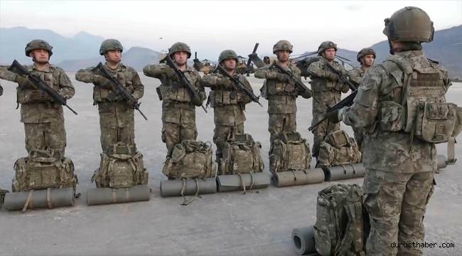 MSB'nin Twitter hesabından "Ben Türk askeriyim, her zaman her yerdeyim" notu ve "Her Dağın Zirvesi Mehmetçik" etiketiyle paylaşılan görüntülerde, bir asker, silah arkadaşlarına, "Kahraman komandolar, kahraman silah arkadaşlarım; bugün oldukça önemli bir operasyona katılacağız. Operasyon bölgesinde silah arkadaşlarımız bizleri beklemekte. Analarımızın ve Türk milletinin dualarıyla son terörist etkisiz hale gelinceye kadar mücadelemiz devam edecektir. Komandolar, başarılar." diye sesleniyor.