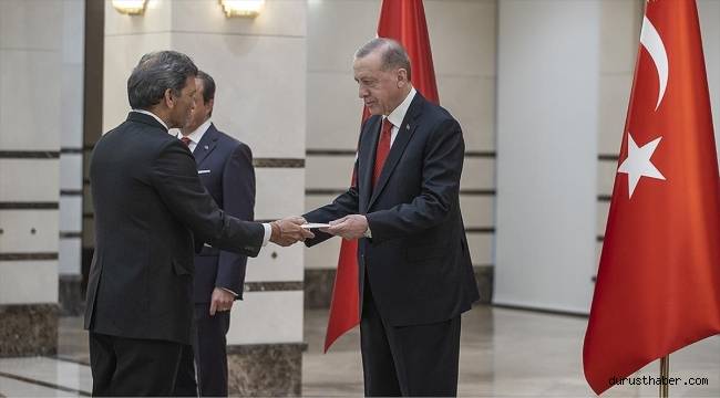 DÜNYA Yayınlanma: 30 Kasım 2022 - 19:26 Güncelleme: 30 Kasım 2022 - 19:38 Hindistan Büyükelçisi Paul, Cumhurbaşkanı Erdoğan'a güven mektubu sundu Cumhurbaşkanı Recep Tayyip Erdoğan, Hindistan'ın Ankara Büyükelçisi Virander Paul'u kabul etti. DÜNYA 30 Kasım 2022 - 19:26 Güncelleme: 30 Kasım 2022 - 19:38 TAKİP ET Yazdır A Büyüt A Küçült Yorumlar Cumhurbaşkanlığı Külliyesi'ndeki kabulde Büyükelçi Paul, Erdoğan'a güven mektubu sundu. Paul'un eşi ve bazı büyükelçilik mensuplarını Cumhurbaşkanı Erdoğan'a takdiminin ardından hatıra fotoğrafı çektirildi. Muhabir: Zafer Fatih BeyazAA YORUMLAR FACEBOOK adlı kullanıcıya cevap x Gönder Son Haberler Steven varsa Robert niye sorun?': Yıldırım'dan Saran karşılaştırması! Kayseri'de ERVA Büyüyor: 67'nci Spor Kulübü Açıldı KTO Başkanı Gülsoy: Ekonomide En Büyük Sorun Belirsizlik Ömür Gedik'ten Olay Sözler! Aşkı Yerden Yere Vurdu! Kayseri’de Servis İle Kamyon Çarpıştı: 8 Yaralı Bayburt'ta kar nedeniyle yolda mahsur kalan sürücü kurtarıldı Bayburt'ta kar nedeniyle yolda mahsur kalan sürücü kurtarıldı