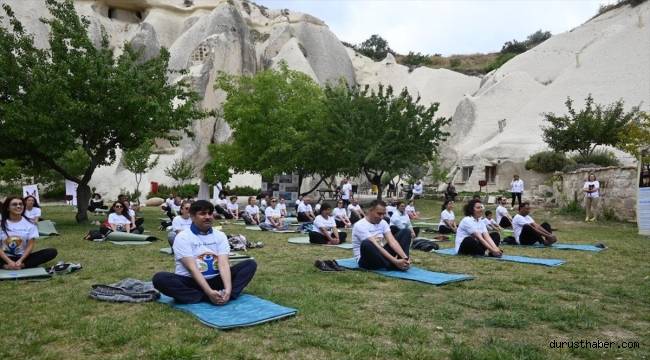 Hindistan'ın Ankara Büyükelçiliği ve Göreme Belediyesince "Dünya Yoga Günü" nedeniyle yapılan etkinlikler kapsamında, Nevşehir'in Göreme beldesinde yoga etkinliği yapıldı.