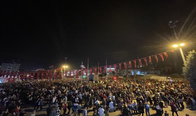 Cumhuriyet Meydanı'nda toplanan binlerce vatandaş, ellerinde Türk Bayrakları ile çalan marşlara eşlik etti.