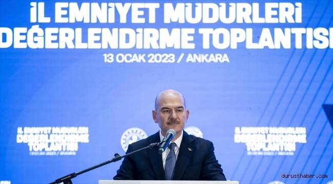 Soylu, Emniyet Genel Müdürlüğü Sosyal Hizmetler ve Sağlık Daire Başkanlığı Şehit Demet Sezen Konferans Salonu'nda düzenlenen "İl Emniyet Müdürleri Değerlendirme Toplantısı"nda katılımcılara hitap etti.