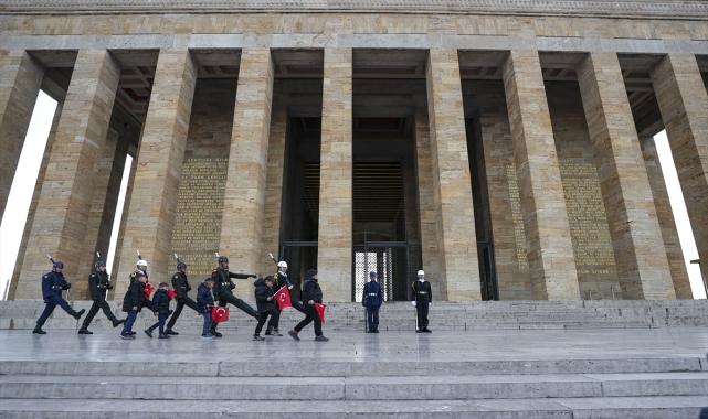 Milli Savunma Bakanlığının düzenlediği program kapsamında Anıtkabir'i ziyaret eden Iğdırlı öğrenciler, Mehmetçiğin nöbet değişimine eşlik etti