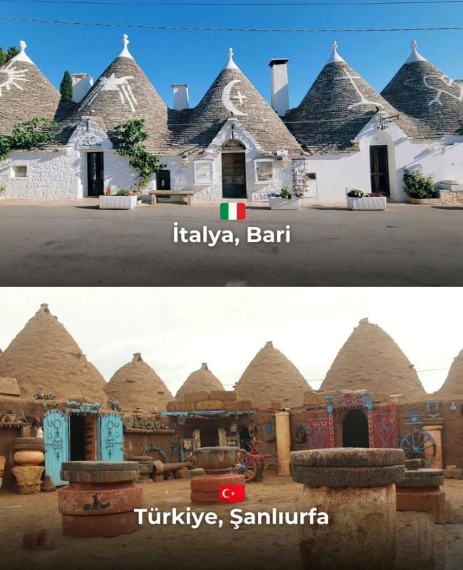 Alberobello’da taşın diliİtalya’nın “çizme topuğu” olarak anılan Puglia bölgesindeki Trulli evleri ise beyaz kireçtaşından, yine harçsız kuru yığma tekniğiyle inşa ediliyor. UNESCO Dünya Mirası Listesi’nde yer alan bu yapılar, konik çatılarının yanı sıra tarihi rivayetleriyle de dikkat çekiyor. Anlatılanlara göre Trulli evleri, geçmişte vergiden kaçınmak amacıyla kolayca sökülüp yeniden yapılabilecek şekilde tasarlanmıştı.Binlerce kilometre, tek mimari akılHarran ve Alberobello evleri, farklı kültürlerin benzer iklim koşullarına karşı geliştirdiği ortak çözümleri gözler önüne seriyor. Uzmanlara göre bu benzerlik, mimarinin yalnızca estetik değil, aynı zamanda coğrafya ve yaşam şartlarıyla doğrudan ilişkili olduğunu ortaya koyuyor.İbrahim Esat Güler