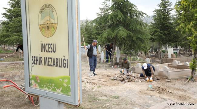 İncesu Belediyesi Temizlik, Mezarlık, Park ve Bahçeler Müdürlüğü ekipleri yaklaşan kurban bayramı öncesi ilçe merkezi ve kırsalındaki mezarlıklarda temizlik, onarım ve bakım işlerini sürdürüyor.