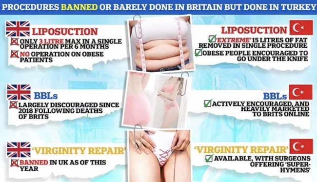Türkiye'de meme büyütme ameliyatının en fazla 3 bin sterline (66 bin TL), yani İngiltere'dekinin neredeyse yarı fiyatına mal olduğu ifade edildi.