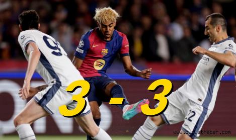 Barcelona, bu gole sadece bir dakika içinde cevap verdi. 65. dakikada Raphinha’nın ceza sahası dışından yaptığı sert vuruş, üst direkten dönüp kaleci Yann Sommer’e çarparak ağlarla buluştu: 3-3.