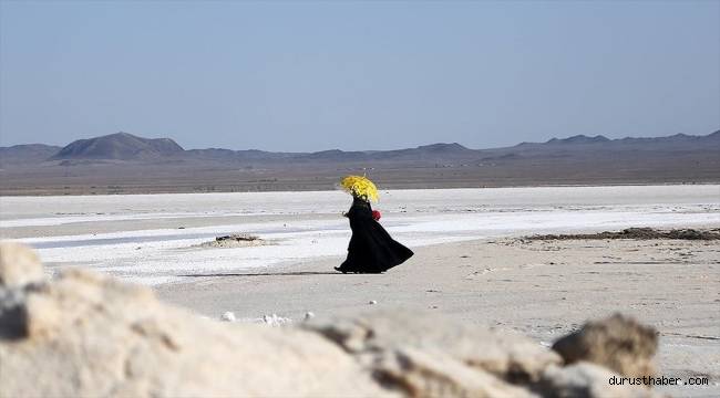 Suyu yüzlerce metre çekilen gölün küçük bir kısmında tuz çıkarma çalışmaları devam ederken çok sayıda ziyaretçi gün doğumu ve gün batımını izlemek için bölgeye geliyor.