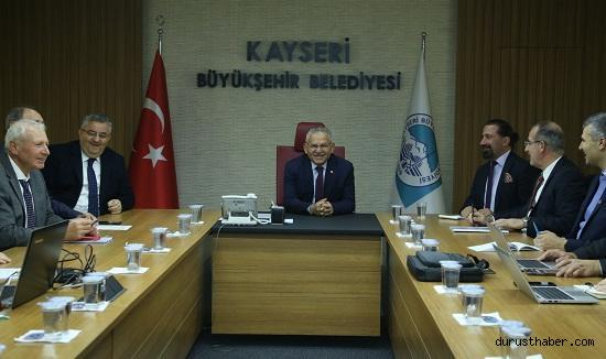 Başkan Büyükkılıç, Başkanlık Toplantı Salonu’nda Kayseri Büyükşehir Belediyesi’nin proje ve yatırımları konusunda gerçekleştirilen sunumun ardından, konukları ile Başkanlık makamında bir süre görüştü.