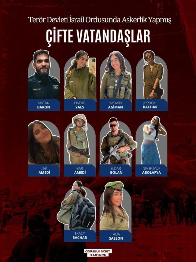Filistin aktivistleri ve bir grup avukat, İsrail Savunma Kuvvetleri (IDF) bünyesinde görev aldığı iddia edilen Türkiye Cumhuriyeti vatandaşı bazı kişiler hakkında suç duyurusunda bulunacaklarını açıkladı.