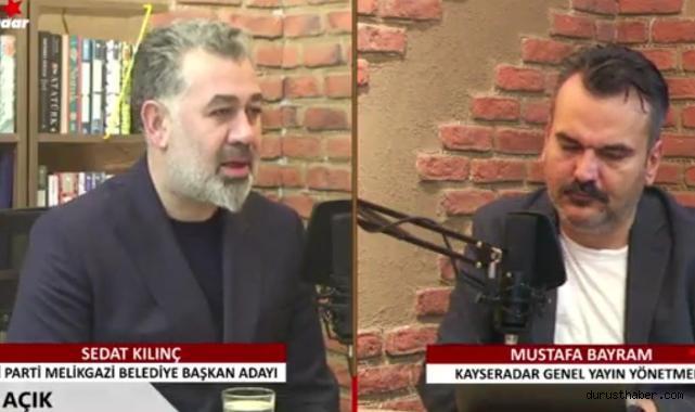 İYİ Parti Melikgazi Belediye Başkan Adayı Sedat Kılınç, Kayseradar ve Radyoradar ortak canlı yayınında ‘Yol Açık’ Programına konuk olarak Genel Yayın Yönetmeni Mustafa Bayram’ın sorularını yanıtladı.