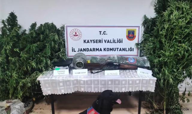 Kayseri İl Jandarma Komutanlığı İstihbarat Şube Müdürlüğü ve Narkotik Suçlarla Mücadele Şube Müdürülüğü ekiplerince, “Uyuşturucu Madde İmal Ticareti” ve “Yasadışı Ekim” konulu suçlardan H.O.’nun ikamet adresine gerçekleştirilen operasyon neticesinde; 3 bin 210 gram narkotik madde, 16 kök narkotik bitki, 1 adet ruhsatsız tabanca ve 1 adet hassas terazi ele geçirildi.