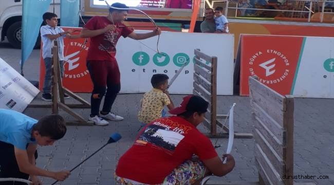 Karaman Gençlik ve Spor İl Müdürlüğü'ne bağlı Nefise Sultan Kız Yurduna kurulan, Etnospor Etkinlik Tırında okçuluk, masa oyunları, çömlek oyunu, marş güreşi, salıncak ve mangala gibi etkinlikler düzenlendi.Geleneksel sporları ve oyunları deneyimleme fırsatı bulan depremzede çocuklara, etkinlik sonunda çeşitli hediyeler verildi.