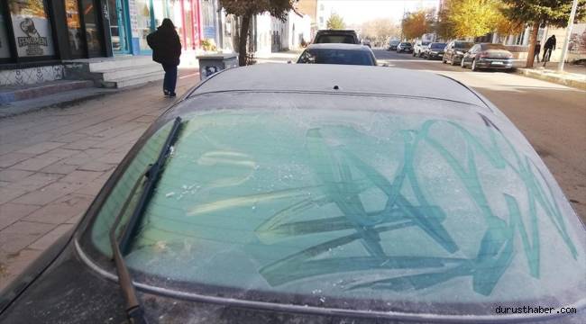 Soğuk havanın yaşamı olumsuz etkilediği kentte, park halindeki araçların camları buz tuttu.