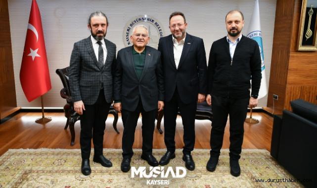 MÜSİAD Kayseri Başkanı Ferhat Akmermer, Yönetim Kurulu Üyemiz Mehmet Özbağdatlı ve Şube Müdürümüz Serkan Soydan, Kayseri Büyükşehir Belediye Başkanı Dr. Memduh Büyükkılıç’ı makamında ziyaret etti. Ziyarette, Kayseri Valiliği himayelerinde yürütülen KAŞE (Kayseri Şehir Endeksleri) Projesi Faz 1 Sonuç Raporu kendisine arz edildi.Başkan Büyükkılıç’ın nazik kabulü için teşekkür eden ekip, projeye ilişkin değerlendirmelerde bulundu.Buse Yıldız