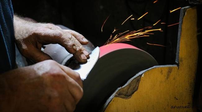 Kentte Bakırcılar Çarşısı çevresinde faaliyet gösteren bıçakçılar bir yandan bıçakların satışını yaparken, diğer taraftan da vatandaşların bıçaklarını bileme makinesiyle keskinleştiriyor.