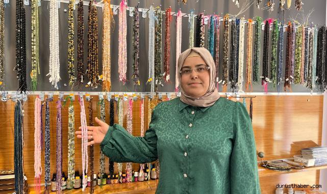 İşletmeci Hacer Sığırcı insanların taşlara olan ilgisinden memnun olduğunu belirterek “42 yaşındayım, iki çocuk annesiyim. Bu işe başlamadan önce ev hanımıydım. Önceden de taşlar ile ilgili bir yer açmayı düşünüyordum. Takı yapmak ve bu işi sanata dönüştürmek ile ilgili hep bir yanımın eksik olduğunu fark ediyordum. En kısa ve ücretsiz şekilde bu işi nasıl halledebileceğimi düşünürken, KAYMEK’e başvurdum. 3 aylık bir eğitim aldım. İnşallah tekrar devam edeceğim. Bu işi evde yapmak bana yetersiz geliyordu. Kayseri’ye baktığımızda da bu bir eksik, taşlara ilgi de yok değil. İnsanlar meraklı ama her şeye internetten ulaşamıyorlar. Böyle olmayacak, bu ilgiyi karşılamak için böyle bir işletme açmam lazım dedim. 2 ay oldu işlet meyi açalı. Sağolsunlar geri dönüşler çok güzel. En çok ametist, kaplan gözü, pembe kuvars, kristal kuvars ve kadınlar için ay taşı tercih ediliyor. Doğal taşların fiyatlarına gelecek olursak, her bir taş kendine özel ve çok farklı yerlerden geliyor. o yüzden hepsinin kendi fiyatları var. Yakın hedef koyarsak çoğu taş var ama getirmek istediğimiz dünya kadar daha taş var, çünkü alan çok geniş. Öncelikle taş çeşidimizi arttırırsak inanıyorum ki Kayseri’de doğal ve gümüş taş üzerine bir numara olacağız” diye konuştu.