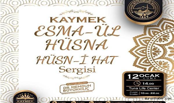 Büyükşehir bünyesindeki Kayseri Mesleki Eğitim ve Kültür A.Ş. (KAYMEK) tarafından 12 Ocak Cuma günü saat 14.00’te açılacak sergide, KAYMEK eğitmenleri ve kursiyerleri tarafından hazırlanan 99 Esma’ül Hüsna isimlerinin hat sanatı ile yazılarak tablo haline getirildiği eserler yer alacak.