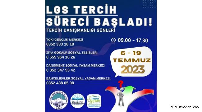 Kayseri Büyükşehir Belediyesi bünyesinde faaliyet gösteren Kayseri Mesleki Eğitim ve Kültür AŞ (KAYMEK), öğrencilere ücretsiz Liselere Geçiş Sistemi (LGS) tercih danışmanlığı hizmeti vermeye başladı.