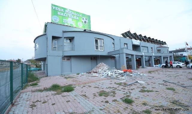 Kayseri Büyükşehir Belediyesi, KAYMEK Yeşil Mahalle Sosyal Tesisleri’nde kapsamlı yenileme çalışmaları yürütüyor. Tesis, kısa süre sonra modern bir yapıyla yeniden hizmet verecek.
