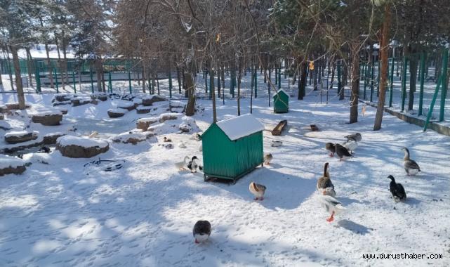 Bölgede bulunan gölet soğuk hava nedeniyle buz tutarken, ördeklerin suya girebilmesi için buzların bir kısmı kırıldı. Ortaya çıkan manzaralar, adeta kartpostallık görüntüler sundu.