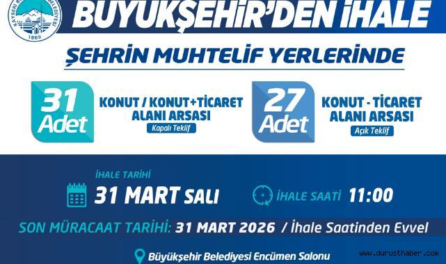 Kayseri Büyükşehir Belediyesi, şehrin farklı noktalarındaki toplam 58 arsayı satışa çıkardı. 31 adet arsa “Kapalı Teklif” usulü, 27 adet arsa ise “Açık Teklif” usulüyle ihale edilecek.