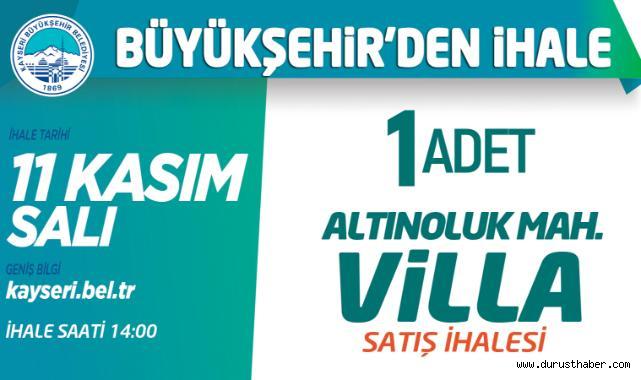 Kayseri Büyükşehir Belediyesi, mülkiyetinde bulunan Melikgazi ilçesi Altınoluk Mahallesi’ndeki 1 adet villayı açık teklif usulüyle satışa çıkarıyor.