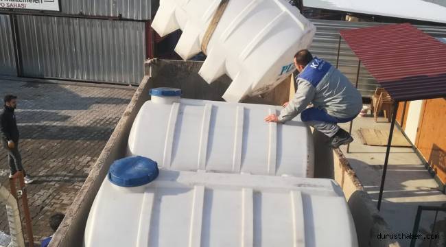 Temel ihtiyaç maddelerinin başında gelen su tedariği konusunda Büyükşehir ekipleri deprem bölgesinde gerekli altyapı onarım çalışmalarını sürdürürken, Kayseri Büyükşehir Belediyesi Su ve Kanalizasyon İdaresi Genel Müdürlüğü (KASKİ) de su temini sağlanması amacıyla 2 bin ve 3 bin litrelik su depolarının yer aldığı 21 adet su deposunu Kahramanmaraş’a gönderdi. Her türlü ihtiyacın karşılanması için özverili bir şekilde gayret gösteren Büyükşehir Belediyesi ekipleri, su depolarını ihtiyaç duyulan noktalarda depremzedelerin istifadesine sunacak.
