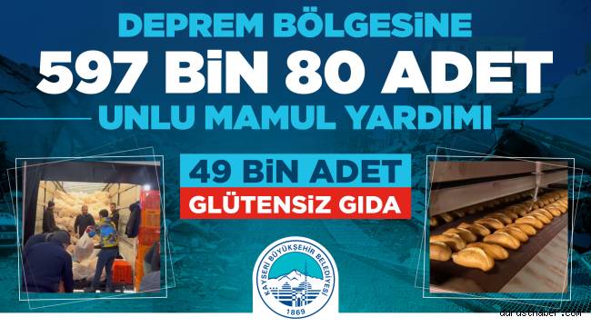 Kayseri Büyükşehir Belediyesi, tüm imkânlarını deprem bölgelerine seferber ederken, depremin ilk gününden bu yana 597 bin 80 adet unlu mamul ürünü depremzedeler için bölgeye gönderdi.
