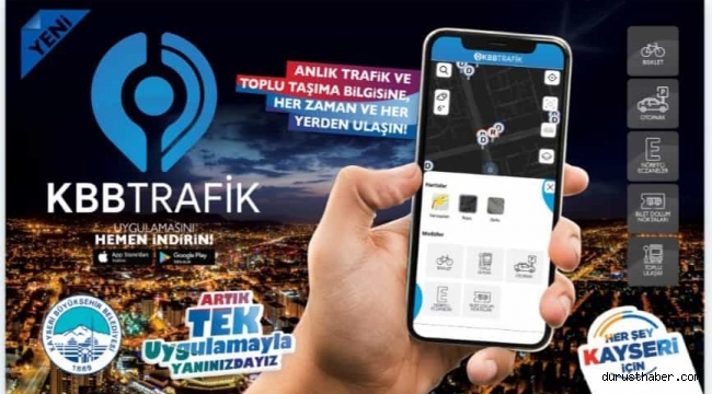 Ulaşımda Kayseri’ye hemen her yeni gün bir hizmeti kazandırarak şehirdeki ulaşım konforu ile güvenliğini arttırmayı hedefleyen Büyükşehir Belediyesi Ulaşım Planlama ve Raylı Sistem Daire Başkanlığı, projeleri ile halka ulaşıyor, çalışmaları ile halkı ulaştırıyor. Kayseri’deki ulaşımı, toplu taşıma araçları geliş gidiş saatleri, trafik yoğunluk durumu gibi ulaşıma dair pek çok bilgiyi anlık olarak cep telefonlarına sunan Büyükşehir Belediyesi’nin KBBTRAFİK uygulaması, tüm akıllı ulaşım sistemi bileşenlerine de erişim sağlayabiliyor.KIRSAL DÂHİL TÜM TOPLU TAŞIMAYI İÇERİYOR
