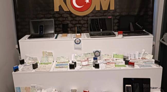 Polis ekiplerince yapılan operasyonda, 120 adet çek, 20 adet senet, 23 adet kaşe ve çok sayıda evrak, döküman ile birlikte dijital materyalller ele geçirildi.