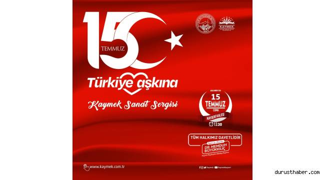 Kayseri Büyükşehir Belediyesine bağlı Kayseri Mesleki Eğitim ve Kültür A.Ş. (KAYMEK), 15 Temmuz Demokrasi ve Milli Birlik Günü etkinlikleri kapsamında ‘15 Temmuz Türkiye Aşkına Sanat Sergisi’ni açıyor.