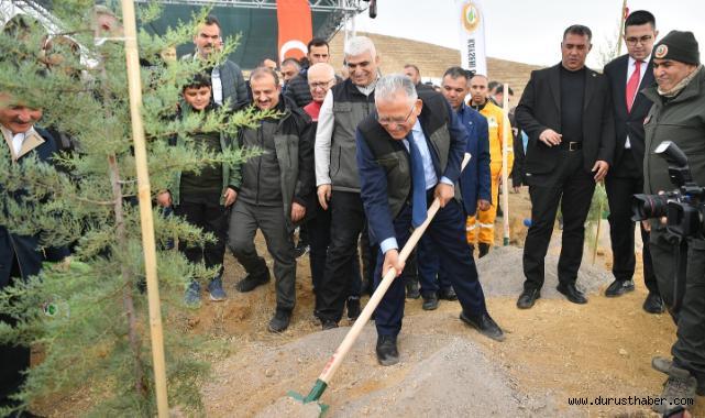 Kayseri Büyükşehir Belediye Başkanı Dr. Memduh Büyükkılıç ve Kayseri Valisi Gökmen Çiçek, protokol üyeleri, öğrenciler ve vatandaşlarla birlikte 35 bin fidanı toprakla buluşturdu.