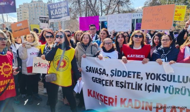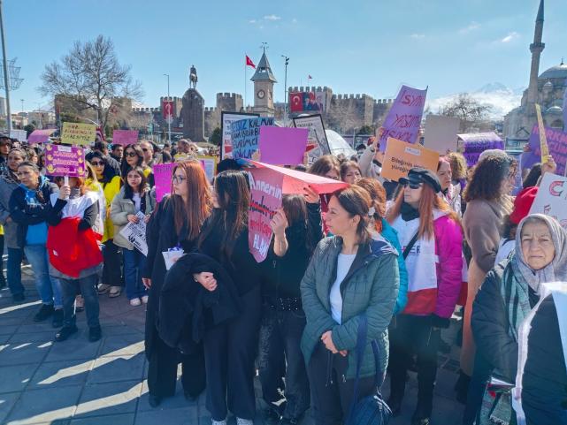 Kayseri’de 8 Mart Dünya Kadınlar Günü dolayısıyla Kayseri Kadın Platformu tarafından yürüyüş düzenlendi. Yüzlerce kadın ellerindeki pankartlarla Cumhuriyet Meydanı’na yürüdü. Platform adına açıklama yapan Sema Karaoğlu, kadınların yaşadığı eşitsizlik ve adaletsizliğin ortak bir sorun olduğunu vurguladı.