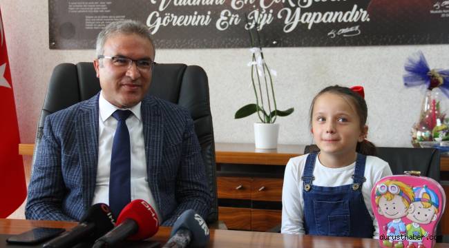 İl Milli Eğitim Müdürü Ayhan Teltik, örnek davranışından dolayı Şehit Doktor Ulucan Dayan İlkokulu 4. sınıf öğrencisi Yaren Kaplan'ı makamında kabul etti.