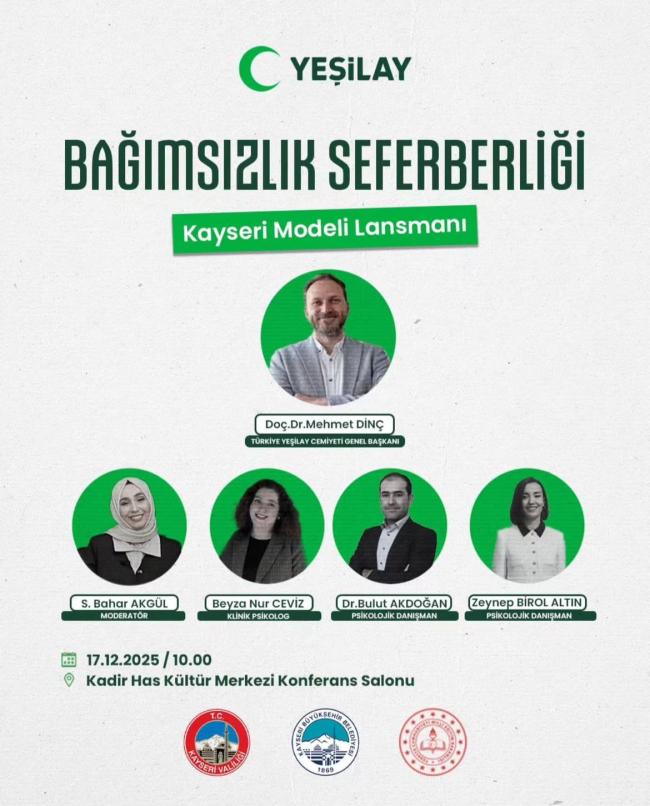 Kayseri Valiliği, bağımlılıkla mücadelede örnek bir adım daha atıyor. Valimiz Sayın Gökmen Çiçek ile Türkiye Yeşilay Cemiyeti Genel Başkanı Doç. Dr. Mehmet Dinç’in katılımlarıyla gerçekleştirilecek olan Bağımsızlık Seferberliği Kayseri Modeli Lansmanı, 17 Aralık 2025 Çarşamba günü yapılacak.