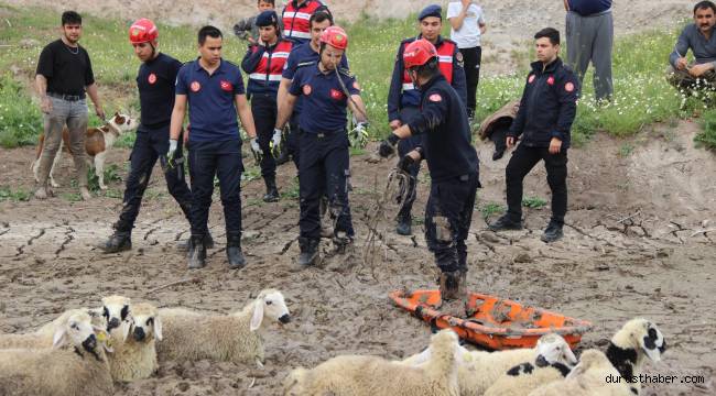 Kayseri'de yangından trafik kazasına, doğal afetlerden birçok konuya kadar görevini başarıyla sürdüren Büyükşehir Belediyesi İtfaiye Daire Başkanlığı ekipleri, tehlikeye düşmüş tüm canlıların canlarını korumak ve kurtarmak için de mücadelesini aralıksız sürdürüyor.Kocasinan ilçesi Akin Mahallesi’nde besici Emre Yılmaz, merada küçükbaş hayvanlarını otlattığı sırada koyunlarından bazılarının bataklığa saplanması sonucu itfaiye ekiplerine ihbarda bulundu. Büyükşehir Belediyesi itfaiye ekipleri, gelen ihbar üzerine kısa sürede bölgeye gitti.Bataklıkta mahsur kalan 30 koyun, itfaiye ekipleri tarafından 2 saatlik operasyon ile kurtarılarak hayvan sahibi Emre Yılmaz’a teslim edildi.Ekiplerin operasyonunu heyecanla izleyen besici, Büyükşehir itfaiye ekiplerine teşekkür ve dua etti.