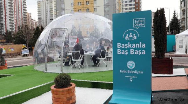 TALAS Belediye Başkanı Mustafa Yalçın, 'Şeffaf Oda'da Başkanla Baş Başa' uygulaması ile makam odasını mahalleye taşıdı. Yalçın, "Vatandaşlarımızın bize önerileri, istekleri ne olursa yüz yüze görüşeceğiz" dedi.