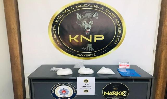 Kayseri'de düzenlenen uyuşturucu operasyonunda bir şüpheli gözaltına alındı. İl Emniyet Müdürlüğü Narkotik Suçlarla Mücadele Şubesi ekipleri, uyuşturucu madde sevkiyatı yaptığını belirledikleri bir aracı kent girişinde durdurdu.Araçta, 2 kilo 700 gram metamfetamin ile 5 uyuşturucu hap bulundu.Sürücü N.K.A, "uyuşturucu madde ticareti yapmak"tan gözaltına alındı.