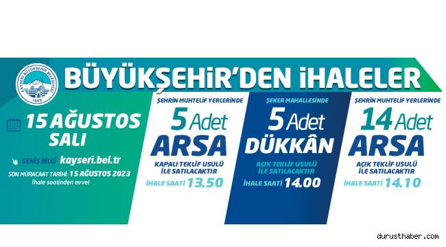 | ŞEHRİN MUHTELİF YERLERİNDE BULUNAN 14 ADET ARSA İHALE İLE AYRI AYRI SATILACAKTIR. Detaylı bilgi için tıklayınız |