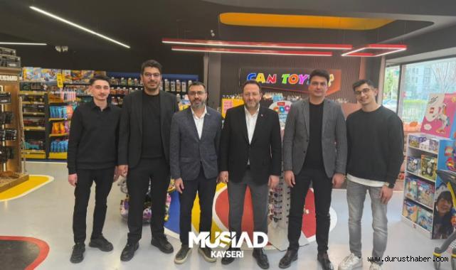 MÜSİAD Kayseri Başkanı Ferhat Akmermer, başkan yardımcıları Ahmet Başkal ve Mustafa Ulusoy ile birlikte yönetim kurulu üyesi Yılmaz Çelik’in hayata geçirdiği Can Toys Plus mağazasını ziyaret etti.