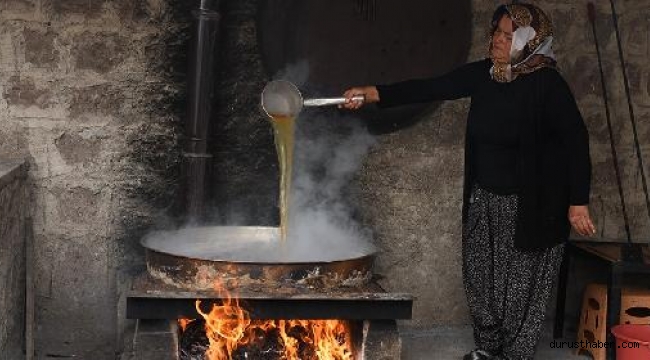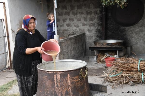 KAYSERİ'nin İncesu ilçesinde, coğrafi işareti bulunan 'Kara Evrek' üzümünden pekmez yapılıyor.